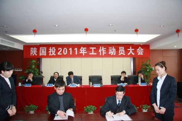 2011年2月10日,公司召開了陜國投2011年工作動員大會。公司領導、公司全體員工參加了會議。會議由公司常務副總裁杜磊主持,黨委書記、董事長薛季民作了動員講話,并對當前的要著重抓好的重點工作進行了部署。