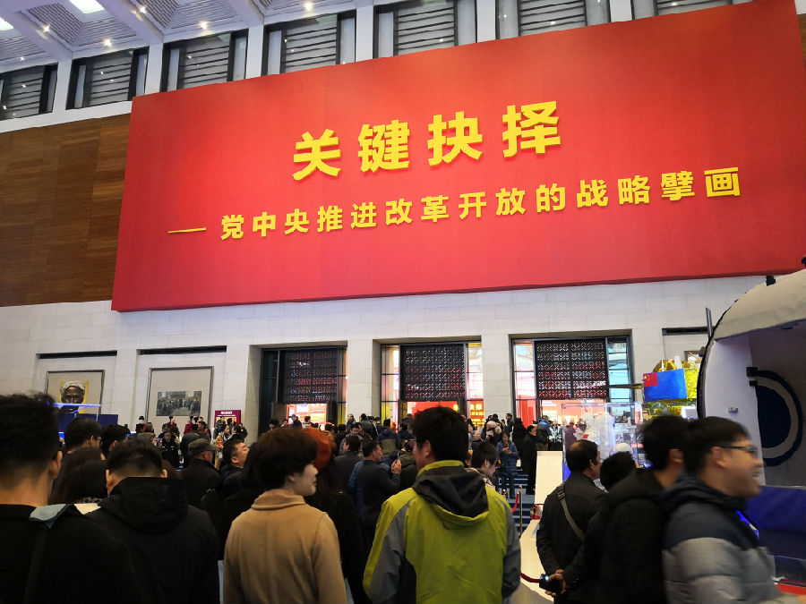 偉大的變革——慶祝改革開放40周年大型展覽”分為“偉大的變革、壯美篇章、關(guān)鍵抉擇、歷史巨變、大國氣象、面向未來”六個展區(qū),展覽以改革開放40年光輝歷程為主線,聚焦改革開放以來的重大時間、事件節(jié)點,集中宣傳展示改革開放和社會主義現(xiàn)代化建設(shè)取得的重大成就,突出展示黨的十八大以來,以習近平同志為核心的黨中央堅定不移高舉改革開放旗幟,推進全面深化改革、全面擴大開放的戰(zhàn)略決策部署。