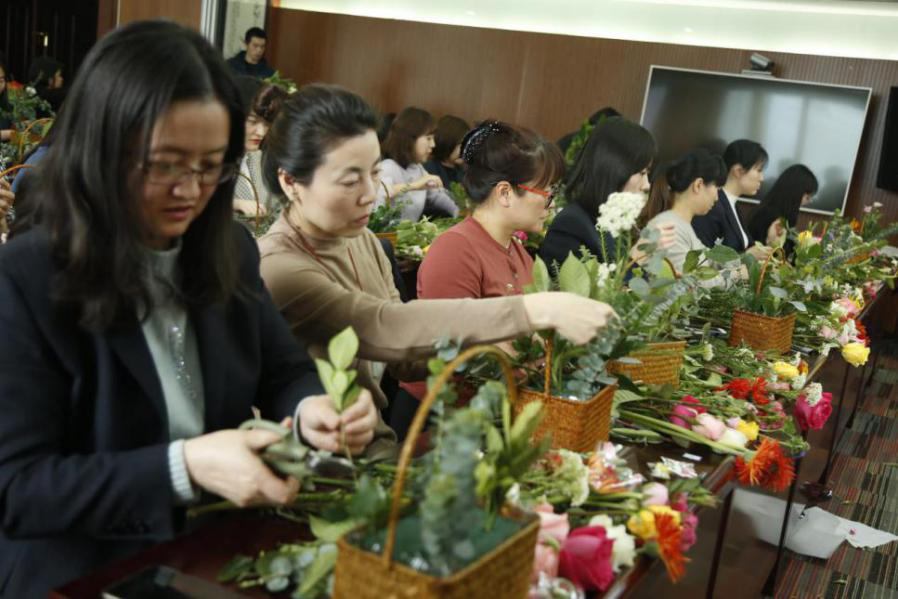 插花活動(dòng)開(kāi)始,首先由花藝老師向大家詳細(xì)介紹了花意花語(yǔ)、鮮花保鮮等插花藝術(shù)方面的相關(guān)知識(shí)。接著由員工自己動(dòng)手制作花籃,大家精心構(gòu)思、大膽創(chuàng)作,色彩各異的鮮花經(jīng)過(guò)女員工們的巧手創(chuàng)作變成一只只色彩繽紛、造型各異的美麗花籃。愉快的插花環(huán)節(jié)過(guò)后,女員工們對(duì)創(chuàng)作的作品進(jìn)行了評(píng)比。這次活動(dòng),不但讓女員工們的藝術(shù)鑒賞能力有所提升,同時(shí)也陶冶了女員工們的情操,更進(jìn)一步激發(fā)了女員工們對(duì)美好生活的向往。