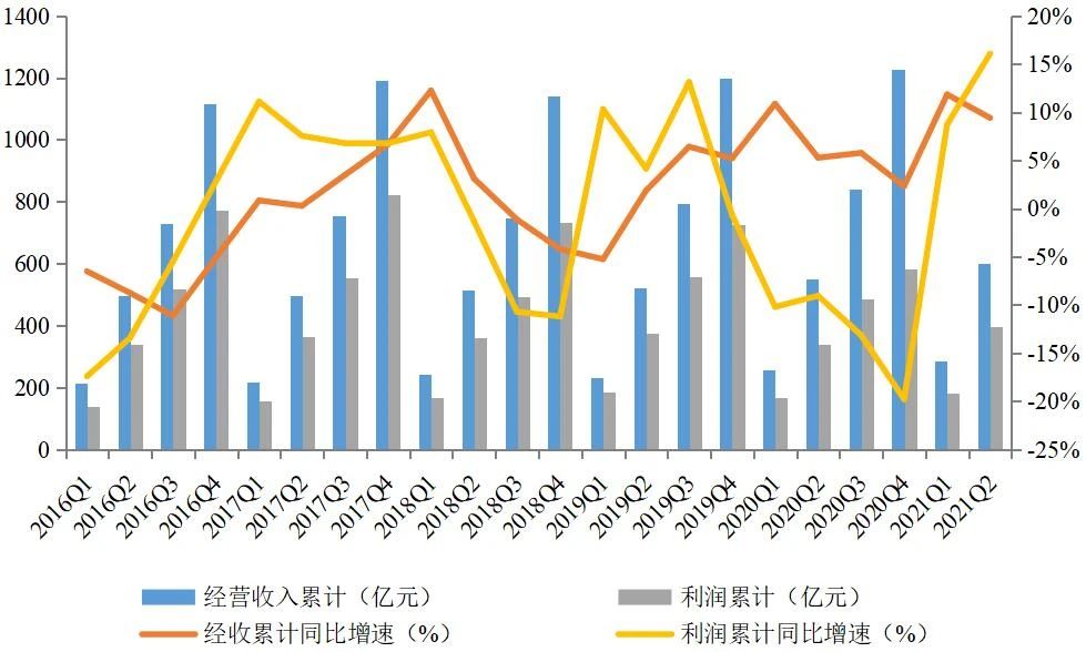 圖7 營(yíng)業(yè)收入與利潤(rùn)總額當(dāng)年累計(jì)值及其同比增速