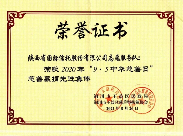 在信托存續(xù)期間,陜國投慈善信托項目組每年堅持與合作公益機構一同前往醫(yī)院、住所看望困難老兵,在與老兵交流的同時送去善款、物資等,持續(xù)讓困難老兵體會到社會的關愛與溫暖。因前期公益慈善工作較為突出,銅川市王益區(qū)民政局、銅川市王益區(qū)慈善暨扶貧協(xié)會授予陜國投“2020年度‘9·5中華慈善日’慈善募捐先進集體”。