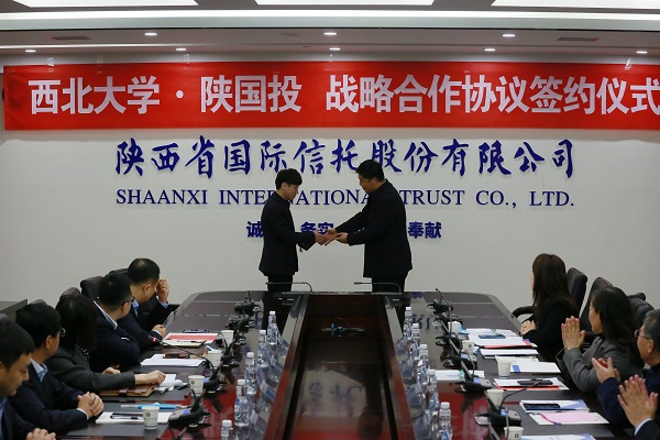 10月21日下午,陜國投與西北大學(xué)戰(zhàn)略合作協(xié)議簽約儀式在陜國投大廈舉行。陜國投黨委書記、董事長薛季民,西北大學(xué)黨委副書記、校長郭立宏出席活動(dòng)并講話。陜國投黨委副書記葉瑛,西北大學(xué)黨委常委、副校長吳振磊等參加儀式。