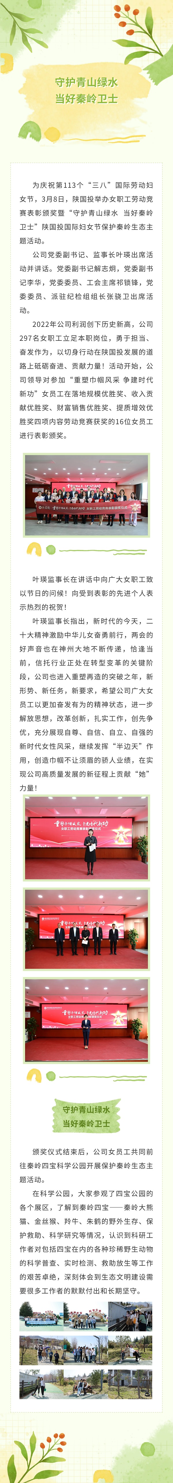 公司舉行女職工勞動競賽表彰頒獎暨國際婦女節(jié)保護(hù)秦嶺生態(tài)主題活動