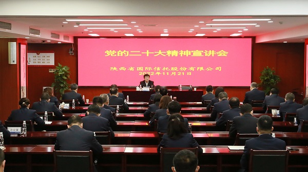 會議要求,公司上下要進(jìn)一步強(qiáng)化思想認(rèn)識,深刻領(lǐng)悟“兩個確立”的決定性意義,切實增強(qiáng)“四個意識”、堅定“四個自信”、做到“兩個維護(hù)”,不斷提高政治判斷力、政治領(lǐng)悟力、政治執(zhí)行力,更加自覺地用黨的二十大精神統(tǒng)一思想、統(tǒng)一意志、統(tǒng)一行動,緊跟習(xí)近平總書記奮進(jìn)新征程、建功新時代。要進(jìn)一步掀起學(xué)習(xí)熱潮,采取多種形式,組織廣大黨員干部員工原原本本學(xué)、全面系統(tǒng)學(xué)、持續(xù)深入學(xué),黨員領(lǐng)導(dǎo)干部要帶頭把好基調(diào)、把好導(dǎo)向,準(zhǔn)確、全面、生動地宣講好黨的二十大精神,做好全方位、多層次、立體式宣傳解讀,讓黨的二十大精神入腦入心。要在理解二十大精神精髓要義、掌握立場觀點方法、把握基本規(guī)律上下深功夫、細(xì)功夫、硬功夫,以強(qiáng)烈的政治責(zé)任感和歷史使命感做好學(xué)習(xí)宣傳貫徹工作,切實把改革創(chuàng)新發(fā)展的力量凝聚到落實黨的二十大對金融工作的各項部署上來,大力加快創(chuàng)新人才隊伍建設(shè),全力推動黨建文化與企業(yè)文化、信托文化、清廉文化相融合,全面推動“重塑再造陜國投”取得新成效。要弘揚(yáng)馬克思主義優(yōu)良學(xué)風(fēng),增強(qiáng)學(xué)習(xí)的針對性和實效性,立足本職工作,緊密聯(lián)系公司實際,堅持學(xué)思用貫通、知信行統(tǒng)一,切實把貫徹落實黨的二十大精神體現(xiàn)到全面完成今年各項目標(biāo)任務(wù)和謀劃安排好明年工作目標(biāo)之中,體現(xiàn)到重塑再造陜國投的具體實踐中,體現(xiàn)到開展作風(fēng)建設(shè)專項行動之中,埋頭苦干、奮勇前進(jìn),努力把學(xué)習(xí)黨的二十大精神所取得的成果轉(zhuǎn)化為公司改革發(fā)展的強(qiáng)大動力,為奮力譜寫陜西高質(zhì)量發(fā)展新篇章貢獻(xiàn)陜國投力量。