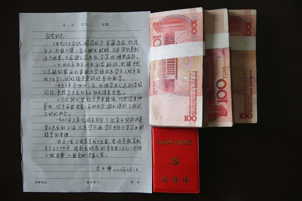 同時(shí),他還上交了一份手寫的思想?yún)R報(bào),在思想?yún)R報(bào)中他寫到“我這一生,父母養(yǎng)育我十五載,黨培養(yǎng)教育我至今已六十九年,現(xiàn)將我結(jié)存的養(yǎng)老金三萬元一次性上繳黨費(fèi),以報(bào)黨的培養(yǎng)之恩”。思想?yún)R報(bào)字跡工整認(rèn)真,看得出來寫的有些顫抖,無聲地道出了一名老黨員對(duì)黨的樸素的感情。
