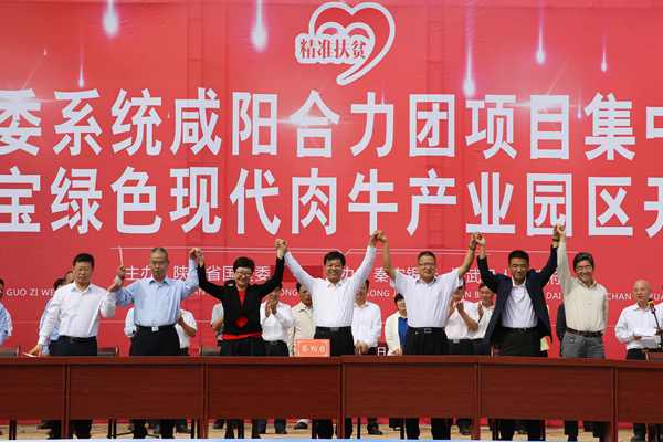 2017年9月13日上午,省國資委系統(tǒng)咸陽合力團產(chǎn)業(yè)扶貧項目集中簽約暨開工儀式在咸陽市長武縣舉行。副省長馮新柱、咸陽市委書記岳亮、省國資委主任胡保存、咸陽市長衛(wèi)華、咸陽市委副書記馬希良、省扶貧辦副主任彭安季、省國資委副巡視員張黎等出席,省國資委副主任王浩生主持。作為合力團成員單位之一,公司黨委書記、董事長薛季民、黨委副書記何熙平代表公司參加活動。