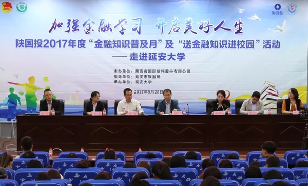 為積極落實(shí)《中國(guó)銀監(jiān)會(huì)辦公廳關(guān)于組織開展2017年“金融知識(shí)進(jìn)萬(wàn)家”宣傳服務(wù)月活動(dòng)的通知》和《關(guān)于開展2017年度陜西省“送金融知識(shí)進(jìn)校園”的活動(dòng)的通知》,9月28日公司總裁助理孫西燕帶隊(duì),財(cái)富管理總部副總經(jīng)理惠利等一行人走進(jìn)革命紅區(qū)延安大學(xué),在學(xué)校圖書館報(bào)告廳為300余名師生舉辦了“金融知識(shí)普及月”及“金融知識(shí)進(jìn)校園”活動(dòng),并赴革命紅區(qū)呼家川村舉辦了金融知識(shí)宣傳及觀影活動(dòng)。