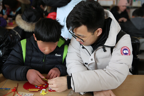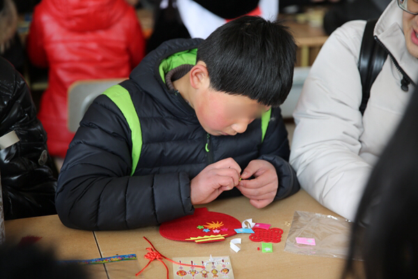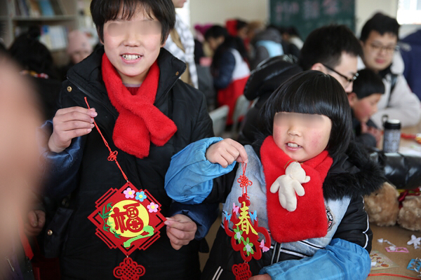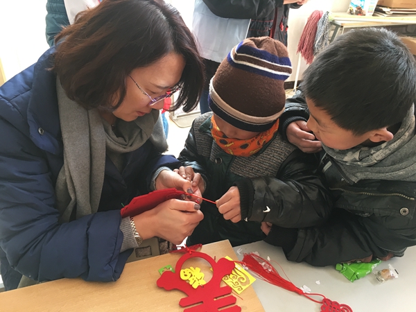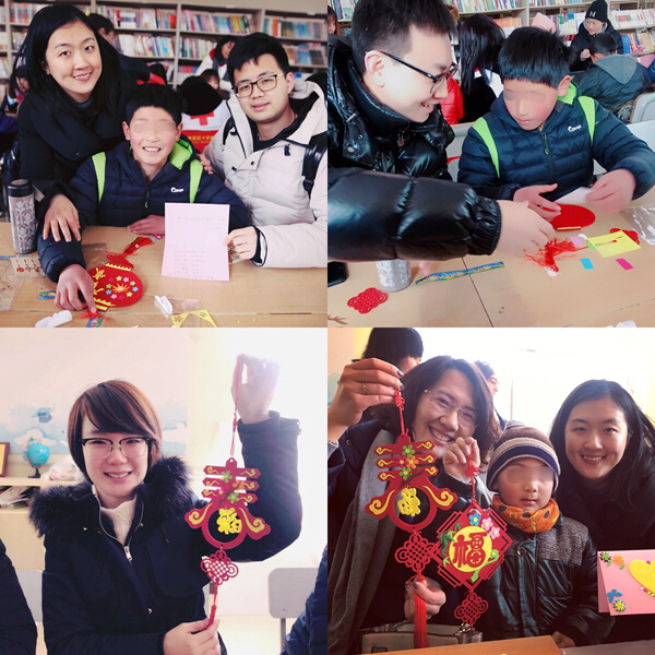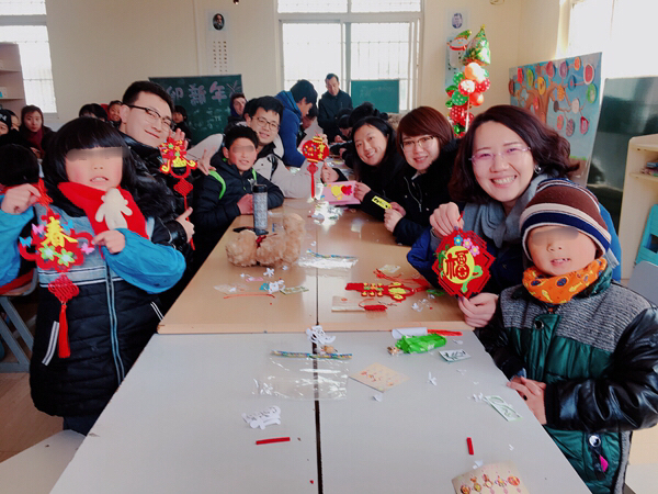 一大早,青年志愿者們便帶著精心準(zhǔn)備的小禮物和手工制作材料出發(fā)了,抵達(dá)兒童村時恰逢孩子們在冬日陽光下活動。青年志愿者們迅速融入,互動唱歌、聊天、游戲后,為孩子們帶來了一節(jié)生動的手工小講座,并與孩子們一起結(jié)對制作DIY新春賀卡、春節(jié)飾品??粗煺娴暮⒆佑瞄L著凍瘡的小手認(rèn)真地在作品上寫下新春祝福,并將滿滿的心意回贈時,志愿者們被深深觸動,紛紛表示,愿意更盡一份心力,幫助更多不幸的孩子健康成長!