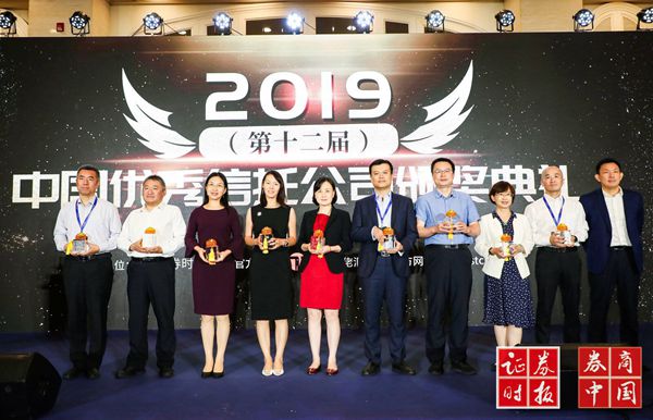 7月12日,證券時報“2019中國信托業(yè)發(fā)展高峰論壇暨第十二屆中國優(yōu)秀信托公司評選頒獎典禮”在深圳舉行,公司斬獲“2019年度區(qū)域影響力信托公司”、“2019年度優(yōu)秀創(chuàng)新信托計劃”兩項大獎,這是公司連續(xù)第九年獲得“區(qū)域影響力信托公司”殊榮,也是行業(yè)對公司對當?shù)厣鐣?jīng)濟的突出貢獻以及高質量轉型與創(chuàng)新發(fā)展的高度認可。公司副總裁、董事會秘書李玲出席活動并接受采訪。