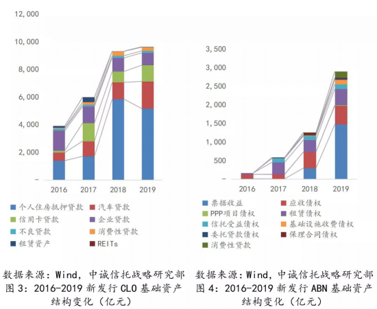從2019年情況來(lái)看,信托公司增量和存量資產(chǎn)證券化業(yè)務(wù)基礎(chǔ)資產(chǎn)類(lèi)型豐富,同時(shí)對(duì)基礎(chǔ)資產(chǎn)的風(fēng)控要求進(jìn)一步提高,底層分散和資質(zhì)較好的基礎(chǔ)資產(chǎn)更受青睞。