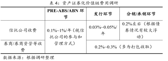 未來(lái),信托公司將擺脫單純SPV角色,盡快構(gòu)建業(yè)務(wù)能力,提高業(yè)務(wù)主導(dǎo)性,拓展“發(fā)行+分銷(xiāo)”打包服務(wù),資產(chǎn)證券化業(yè)務(wù)將逐步提升對(duì)信托公司的收入貢獻(xiàn)。從資產(chǎn)證券化價(jià)值鏈來(lái)看,信托公司開(kāi)展Pre-ABS/ABN業(yè)務(wù)帶有較大的機(jī)會(huì)性,但分銷(xiāo)環(huán)節(jié)的積極參與已成為各家的重要發(fā)力點(diǎn),實(shí)行“發(fā)行+分銷(xiāo)”打包將成為業(yè)務(wù)趨勢(shì)。一方面,通過(guò)實(shí)施“發(fā)行+分銷(xiāo)”打包,整體報(bào)酬率將達(dá)到千二以上,資產(chǎn)證券化業(yè)務(wù)將獲得更好的收入貢獻(xiàn)。另一方面,報(bào)酬率的提高有利于提高業(yè)務(wù)人員展業(yè)積極性,有利于吸引外部成熟人才,并進(jìn)一步提高信托公司開(kāi)展資產(chǎn)證券化業(yè)務(wù)的能力和競(jìng)爭(zhēng)優(yōu)勢(shì)。據(jù)調(diào)研,券商/券商資管等開(kāi)展資產(chǎn)證券化業(yè)務(wù),多采取“發(fā)行+承銷(xiāo)”打包的服務(wù)方式,合計(jì)收費(fèi)在千二到千三左右,同時(shí)券商/券商資管等往往采取前端一次性收費(fèi)的方式,相比之下信托公司發(fā)行環(huán)節(jié)按年收費(fèi)和分銷(xiāo)環(huán)節(jié)一次性收費(fèi)則可實(shí)現(xiàn)更高收入,因此在實(shí)施市場(chǎng)化考核的情況下,信托公司資產(chǎn)證券化業(yè)務(wù)人員展業(yè)積極性將有所提高,對(duì)外部成熟人才的吸引力也將增強(qiáng),信托公司資產(chǎn)證券化業(yè)務(wù)的競(jìng)爭(zhēng)優(yōu)勢(shì)將進(jìn)一步凸顯。