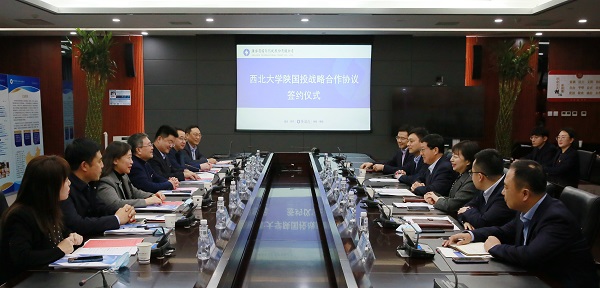 10月21日下午,陜國投與西北大學(xué)戰(zhàn)略合作協(xié)議簽約儀式在陜國投大廈舉行。陜國投黨委書記、董事長薛季民,西北大學(xué)黨委副書記、校長郭立宏出席活動(dòng)并講話。陜國投黨委副書記葉瑛,西北大學(xué)黨委常委、副校長吳振磊等參加儀式。