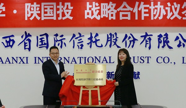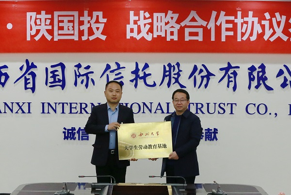 簽約儀式后,雙方共同為陜國投西北大學(xué)聯(lián)合培養(yǎng)博士后流動(dòng)站揭牌,并舉行了西北大學(xué)經(jīng)濟(jì)管理學(xué)院學(xué)生實(shí)習(xí)實(shí)踐教育基地、西北大學(xué)經(jīng)濟(jì)管理學(xué)院大學(xué)生勞動(dòng)教育基地、陜國投教育培訓(xùn)基地授牌儀式。