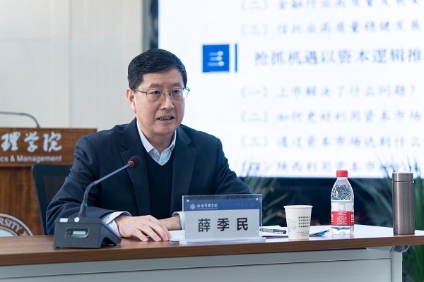 11月12日,按照陜西銀保監(jiān)局與西北大學(xué)開展清廉金融文化共建活動(dòng)的安排,公司黨委書記、董事長(zhǎng)薛季民受邀前往西北大學(xué),為經(jīng)濟(jì)管理學(xué)院師生做了題為《涵養(yǎng)清廉金融文化助推陜國(guó)投高質(zhì)量發(fā)展》的講座。陜西銀保監(jiān)局紀(jì)委辦公室主任胡海龍,西北大學(xué)黨委副書記、紀(jì)委書記、省監(jiān)委駐校監(jiān)察專員李邦邦,校黨委常委、副校長(zhǎng)、經(jīng)濟(jì)管理學(xué)院院長(zhǎng)吳振磊,經(jīng)管學(xué)院黨委書記杜勇,公司黨委委員、工會(huì)主席祁鎖鋒等出席了本次活動(dòng),七十余名經(jīng)管學(xué)院2020級(jí)本科生參加了講座。