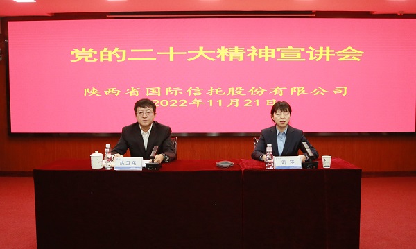 會議要求,公司上下要進(jìn)一步強(qiáng)化思想認(rèn)識,深刻領(lǐng)悟“兩個確立”的決定性意義,切實增強(qiáng)“四個意識”、堅定“四個自信”、做到“兩個維護(hù)”,不斷提高政治判斷力、政治領(lǐng)悟力、政治執(zhí)行力,更加自覺地用黨的二十大精神統(tǒng)一思想、統(tǒng)一意志、統(tǒng)一行動,緊跟習(xí)近平總書記奮進(jìn)新征程、建功新時代。要進(jìn)一步掀起學(xué)習(xí)熱潮,采取多種形式,組織廣大黨員干部員工原原本本學(xué)、全面系統(tǒng)學(xué)、持續(xù)深入學(xué),黨員領(lǐng)導(dǎo)干部要帶頭把好基調(diào)、把好導(dǎo)向,準(zhǔn)確、全面、生動地宣講好黨的二十大精神,做好全方位、多層次、立體式宣傳解讀,讓黨的二十大精神入腦入心。要在理解二十大精神精髓要義、掌握立場觀點方法、把握基本規(guī)律上下深功夫、細(xì)功夫、硬功夫,以強(qiáng)烈的政治責(zé)任感和歷史使命感做好學(xué)習(xí)宣傳貫徹工作,切實把改革創(chuàng)新發(fā)展的力量凝聚到落實黨的二十大對金融工作的各項部署上來,大力加快創(chuàng)新人才隊伍建設(shè),全力推動黨建文化與企業(yè)文化、信托文化、清廉文化相融合,全面推動“重塑再造陜國投”取得新成效。要弘揚(yáng)馬克思主義優(yōu)良學(xué)風(fēng),增強(qiáng)學(xué)習(xí)的針對性和實效性,立足本職工作,緊密聯(lián)系公司實際,堅持學(xué)思用貫通、知信行統(tǒng)一,切實把貫徹落實黨的二十大精神體現(xiàn)到全面完成今年各項目標(biāo)任務(wù)和謀劃安排好明年工作目標(biāo)之中,體現(xiàn)到重塑再造陜國投的具體實踐中,體現(xiàn)到開展作風(fēng)建設(shè)專項行動之中,埋頭苦干、奮勇前進(jìn),努力把學(xué)習(xí)黨的二十大精神所取得的成果轉(zhuǎn)化為公司改革發(fā)展的強(qiáng)大動力,為奮力譜寫陜西高質(zhì)量發(fā)展新篇章貢獻(xiàn)陜國投力量。